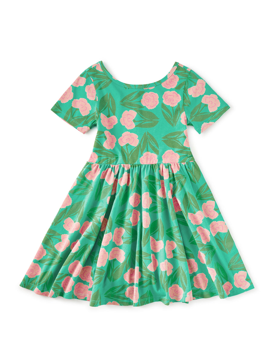 Vintage Floral Tile Crochet Trim Ruffle Dress