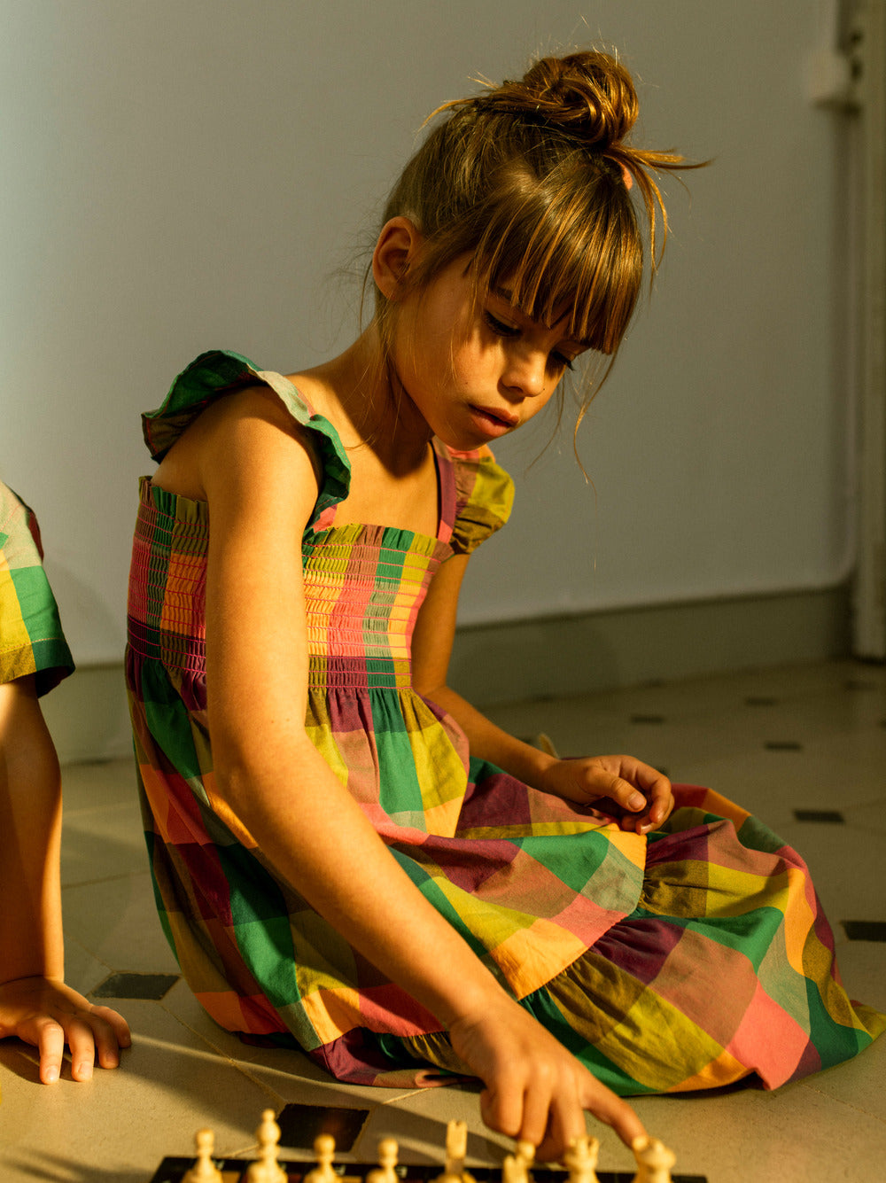 Barcelona Plaid Smocked Flutter Sleeve Dress