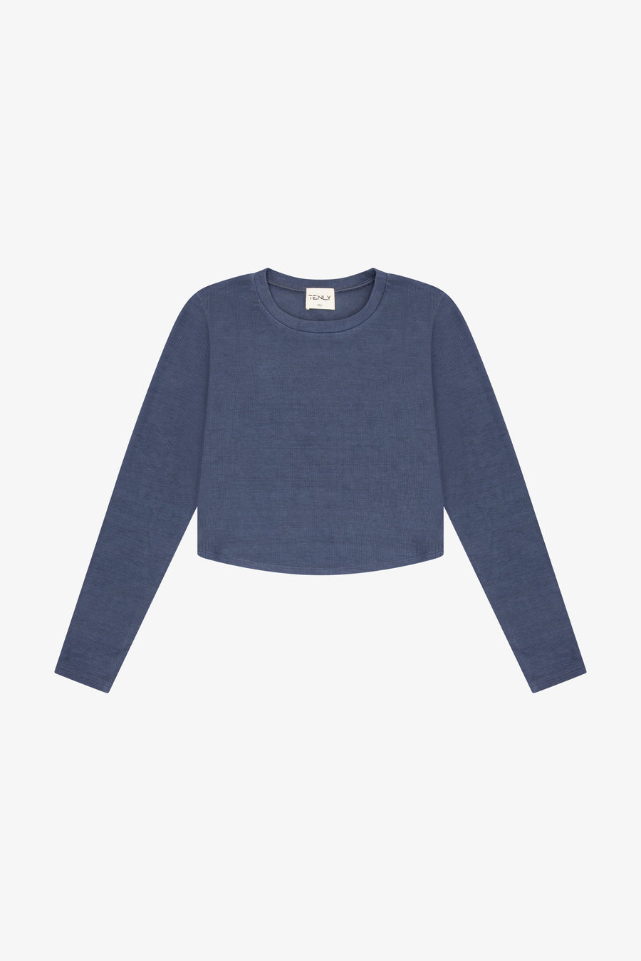 Indigo Storm Rayon ribbed curve hem longsleeve