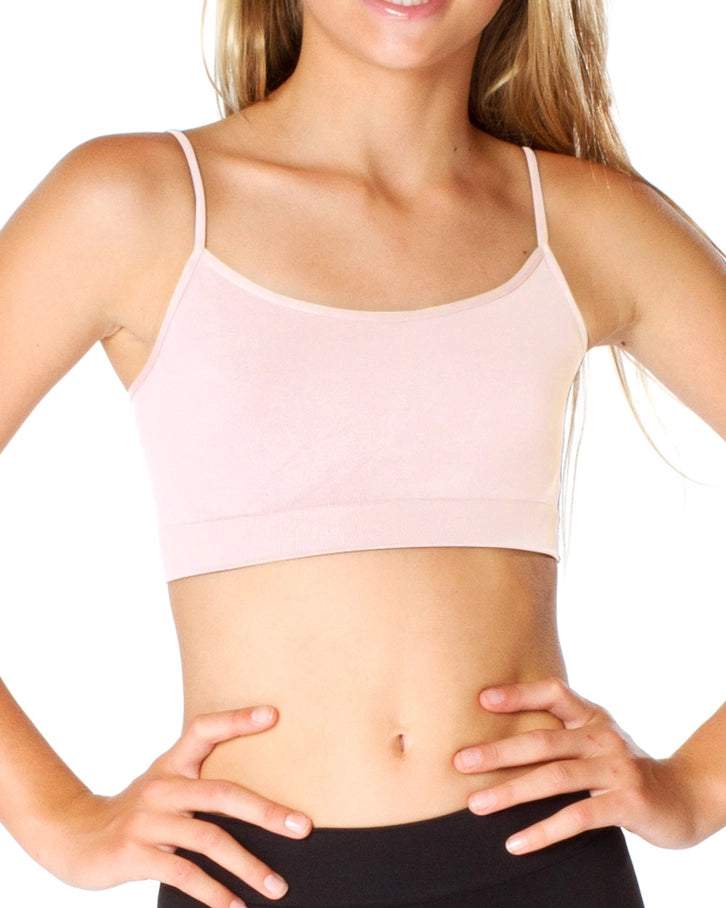 Description : One of our best-selling bra camis.This bra cami style has a smooth front and is a great layering piece under any tank top or t-shirt for extra comfort and confidence. 92% nylon/8% spandex. One size: designed for girls who wear sizes 10-14.