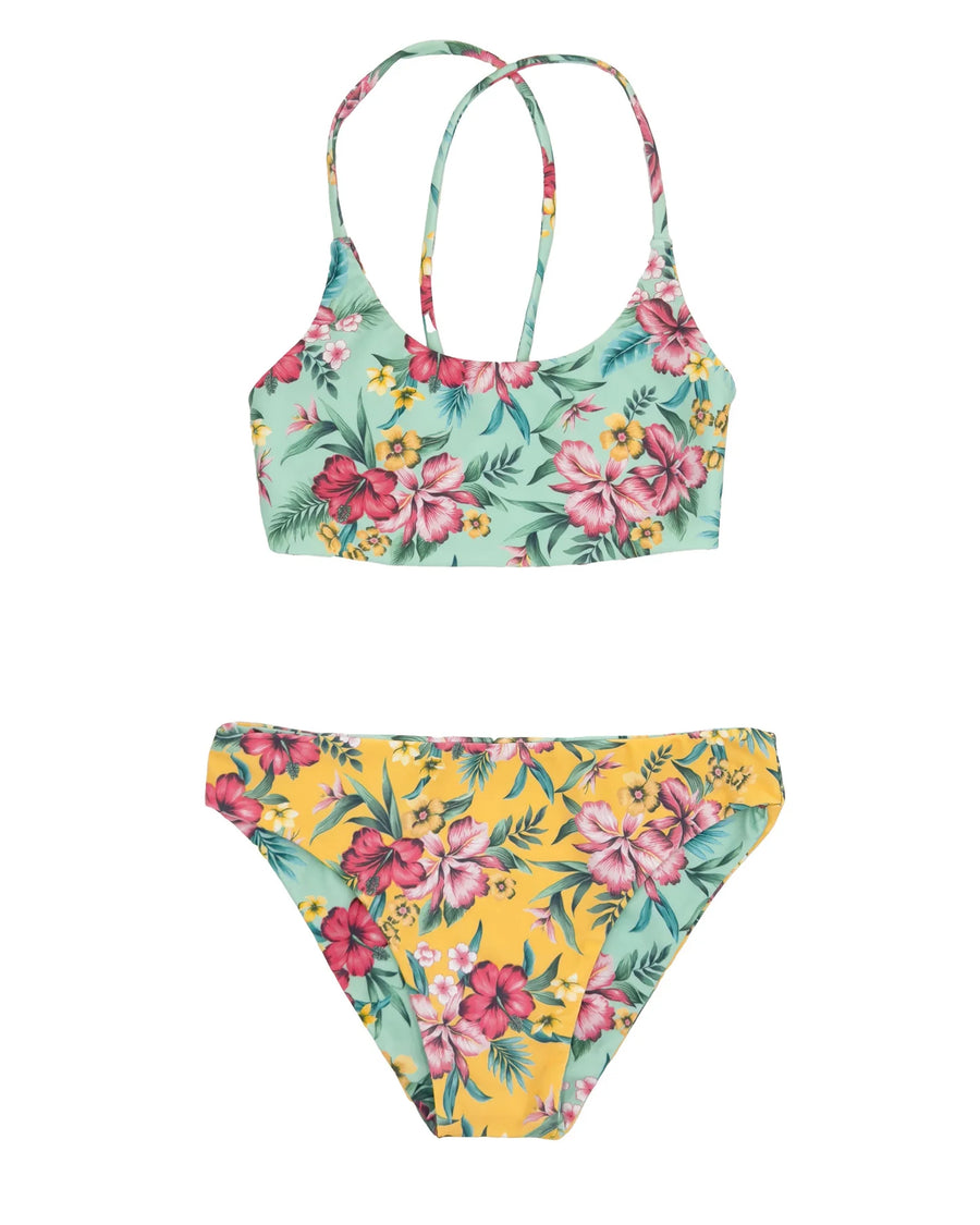 Description : One of our best selling reversible bikinis that can be worn multiple ways, Paradise Cove print reverses to beach glass and golden sun, double lined for extra support and coverage Print: paradise Cove Fabric: 80% Polyester 20% Elastane UV Protection: 50+ UPF sun protection Fit: True to size