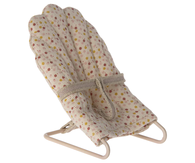 Description : With this baby sitter, it is easy to put your little friends to sleep. The base is made of metal and covered by the most lovely fabric. The chair fits my sized rabbits and baby mice perfectly.