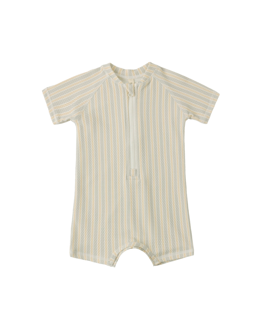 Zip Rashguard One Piece Blue & Butterscotch Stripe