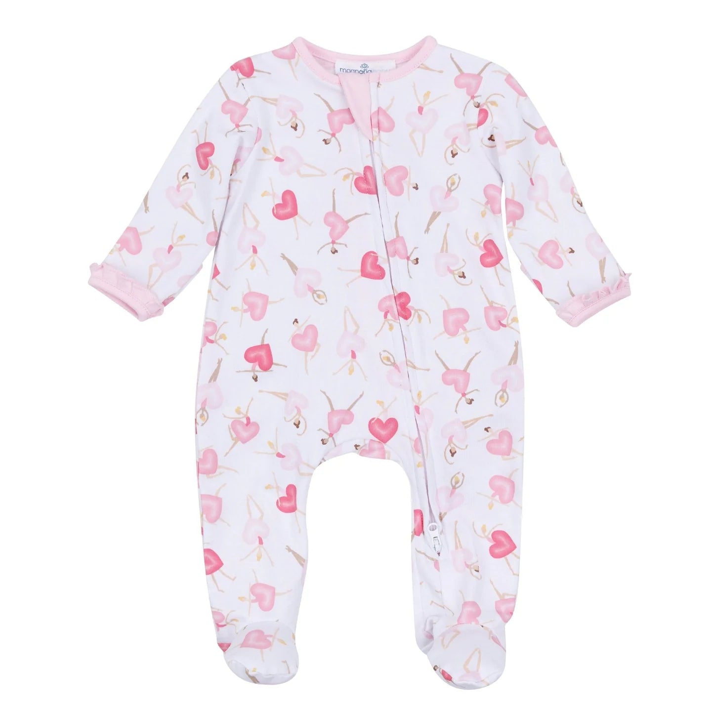 Description : 100% Pima Cotton: This luxurious, soft, and breathable fabric is exceptionally gentle on delicate skin. Two-Way Zipper: The two-way zipper makes dressing and diaper changes simple and quick, even at night. Charming Print: Features a playful full "Dancing Hearts" print for a fun and stylish look. Comfortable Fit: Designed for all-day wear, with integrated footies to keep tiny toes cozy.
