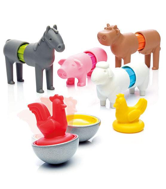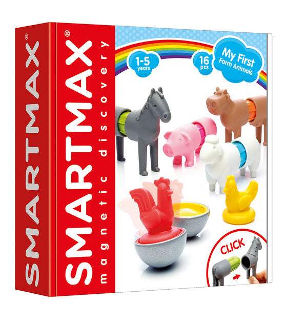 Description : Young children can safely discover the magic of magnetism with the SMARTMAX "My First" collection. More magnetic fun with My First Farm Animals! Build a horse, cow, sheep, chicken or rooster.. Or mix and Match! Contents: 4 Smartmax Bars, 2 cow pieces, 2 horse pieces, 2 pig pieces, 2 sheep pieces, 1 Rooster, 1 Hen, and 2 Bases. 9.4" x 2.4" x 9.4" Easily click together to create animals Magnetic discovery for ages 1-5 Parts are compatible with all SmartMax sets