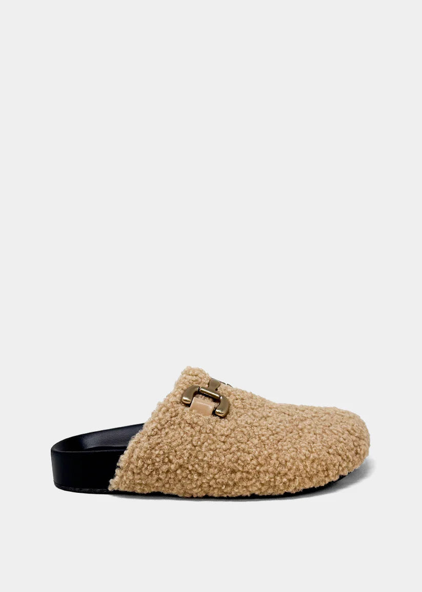 Description : Soft, stylish, and made for cozy days.The AZALEA MINI in Beige brings ultimate comfort and fashion-forward charm to your little one's wardrobe. This playful mule-style clog is wrapped in plush teddy faux shearling and finished with a shiny gold-tone buckle-just the right mix of fun and elevated. Designed for easy slip-on wear and maximum comfort, it's the go-to style for laid-back moments that still feel totally put together.