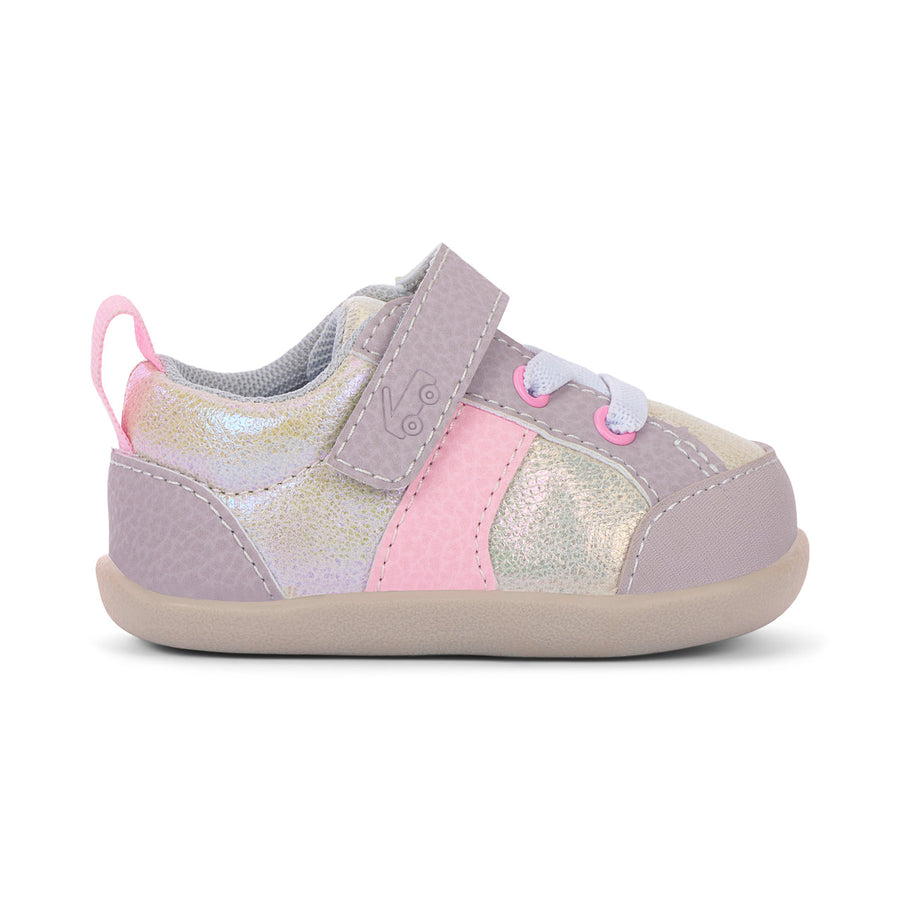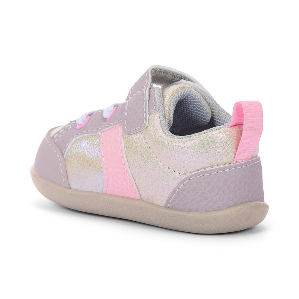 Description : First walker shoe. Retro inspired yet right on trend, our Connor court-inspired first walker is ready for fun. Feet stay fresh on the inside and protected on the outside thanks to recycled mesh lining, an extra durable rubber toe cap, and flexible, durable outsole. Metallic textile upper with nubuck-feel overlays and extra durable rubber toe cap to protect little toes. Recycled mesh lining and sockliner keeps feet dry and fresh. Recycled TPR rubber outsole provides flexibility, traction, and durability for early steps. Adjustable hook-and-loop strap and faux elastic laces allow for a secure fit. Generous toe box provides room for healthy foot development. Awarded the Seal of Acceptance from the American Podiatric Medical Association (APMA). Vegan – made without any animal products. Care Instructions: Spot clean using a mild detergent and damp cloth. Allow to air dry.